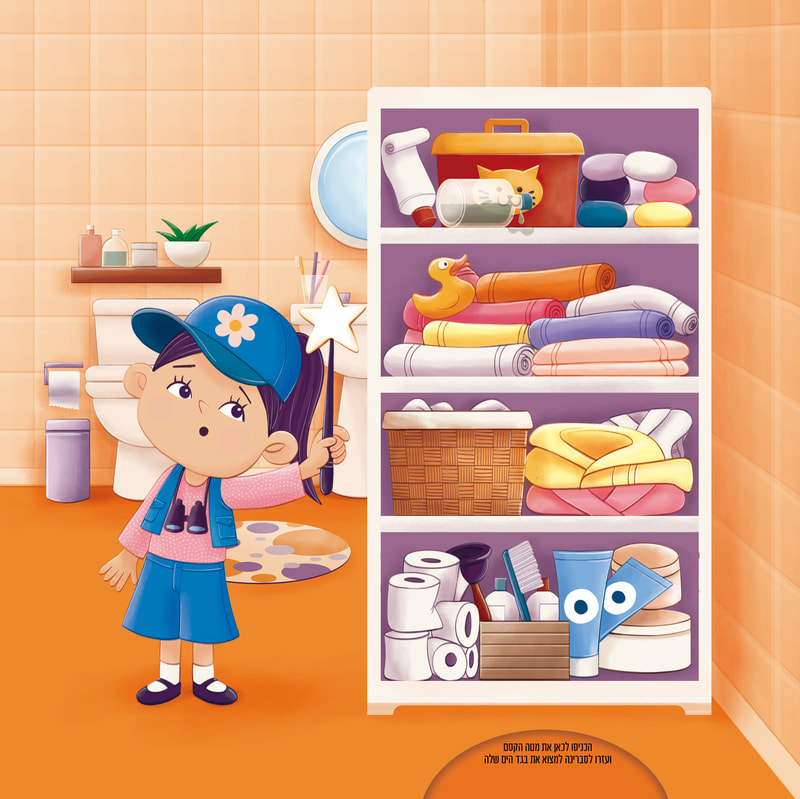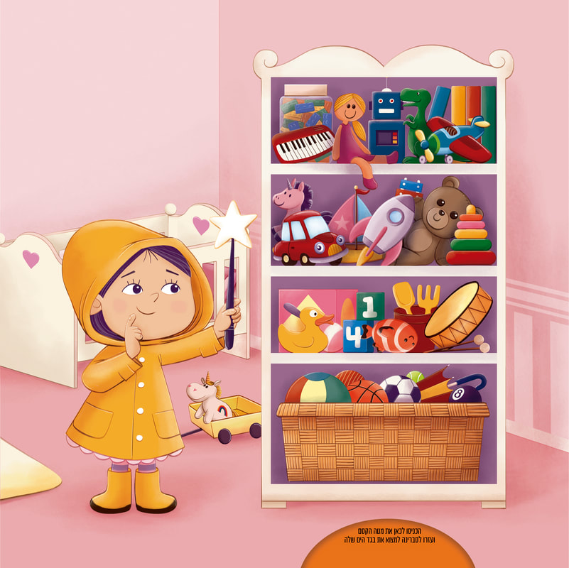 Illustrations from the book The Fairy of Lost Objects, published by the Israeli children's book publisher Clasikaletet. With the help of the Magic Wand, we can find the objects that the absent-minded Fairy Messalina has lost. A fun book that helps children organize their belongings and toys. 2025 |
