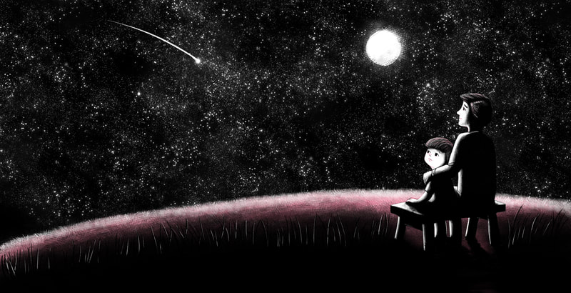 Estrella Fugaz es un libro que habla de la muerte sin mencionarla. Habla de esta ausencia inexorable pero a la vez, de la presencia que la antecedió. De los recuerdos y de la memoria, intenta de manera muy personal, mostrarnos que el espacio vacío que deja la ausencia debe ser llenado con los recuerdos memorables, entrañables, que son los que nos van a encontrar, sin darnos cuenta, con una sonrisa en la boca. Este proyecto surge como trabajo final del Posgrado de Ilustración Profesional de la Universidad de Buenos Aires y además, fue elegido como uno de los finalistas del V Concurso Internacional soyAutor de Libro-Album. 2022. |
